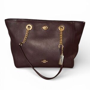 Coach Turnlock Chain Tote Polished Pebble Leather Gold Hardware
