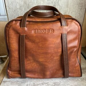 Singer Sewing Machine Travel Vinyl Carry Case Storage Bag Brown Vegan Leather