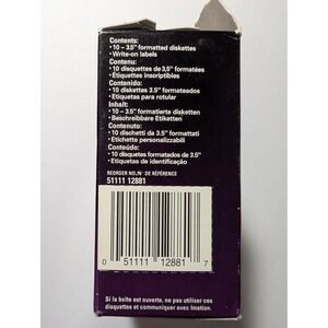 Open box of 10 Imation 2HD 3.5-inch IBM formatted high-density diskettes plus 1 MF 2HD Maxwell diskettes and labels.