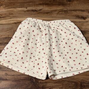 Stylish and comfortable cream athletic shorts featuring a charming floral print. Perfect for active days.