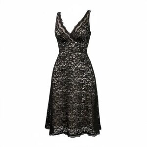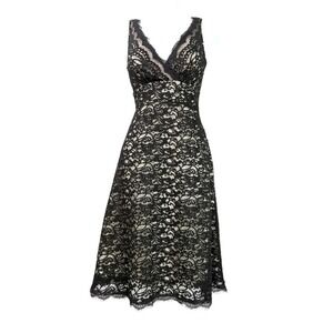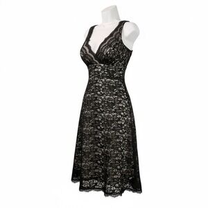 WHBM Black Lace Goth Dress Nude Lining Bow Tie Back Size 2