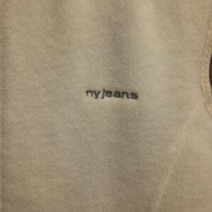 White NY jeans fleece vest. Zips closed up front with 2 front pockets. Never worn. No holes or stains. Smoke free home.