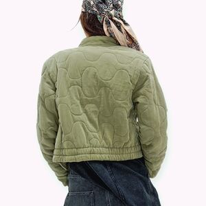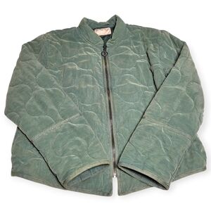 Free People Aura Liner Quilted Bomber Jacket Green Full Zip Front Boxy Large NWT
