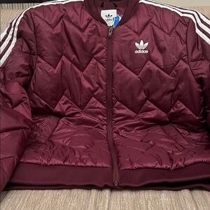 Adidas Burgundy Quilted Jacket with White Accents