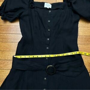 Elegant black midi dress with puff sleeves. Button-down front and belt detail. Perfect for any occasion. I love it but it is just a little big for me in the bust area. I wish I could make it work!