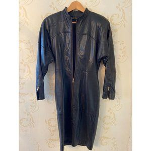 Elegant black leather dress with a sleek design. Perfect for a night out or a stylish event. Fits more like a small or 6.