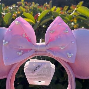 Disney Parks Pearl Mickey Icon Head pink Bow Fashion Mickey Minnie Ears