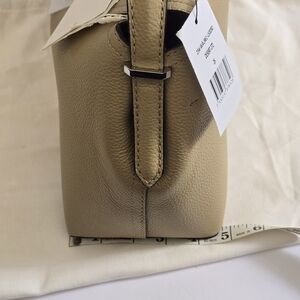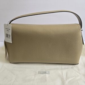 Features: grained leather, top handle, detachable adjustable strap, silver-tone hardware, slip pockets, lined