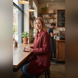 Ruby red trench coat/jacket with warm removable inner liner. In great condition.