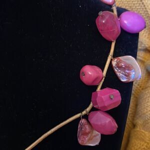 Unbranded strung on gold cord, can be tied differently and worn at whatever length you choose! Various polished stone and plastic beads. Total length 30”.
