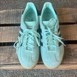 Adidas Gazelle Indoor Sneakers Clear Mint Black Stripes Gum Sole size 8 men’s