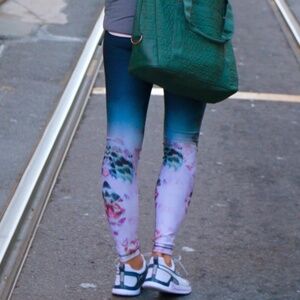 CALIA NWOT Carrie Underwood Blue Floral Ombré Leggings SZ S