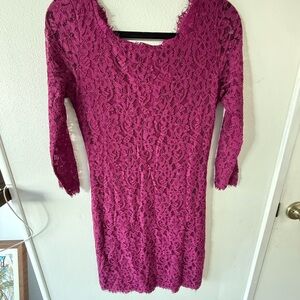 Diane Von Furstenberg Fuchsia Celebrity Zaria Lace 3/4Sleeve Dress