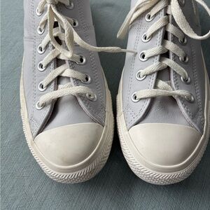 Converse Women’s Leather Light Lavender Gray Bow Sneakers size 9