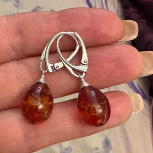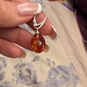 Amber and Silver Necklace and Earring Set
