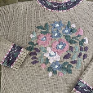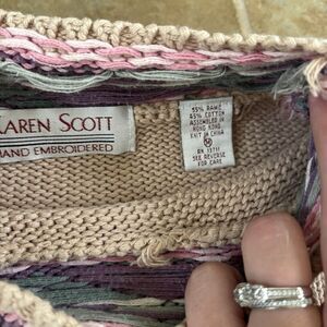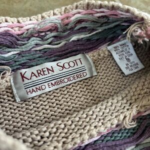 Karen Scott Hand Embroidered Sweater Womens Size Medium Cottagecore Vintage 90s