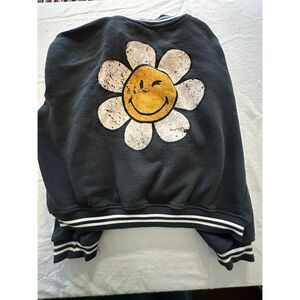 H&M Kid's Dark Gray SmileyWorld Printed Sweatshirt Baseball Jacket Size 12/14