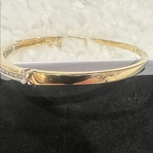 Elegant 14K gold bangle with sparkling diamonds. Perfect for any occasion.