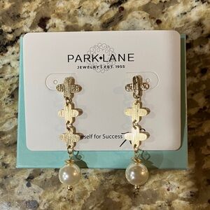 Brand new Sunray earrings by Park Lane. From the Meadow Muse Collection - 2026. Matte gold quatrefoil drop earrings with an ivory glass pearl at the bottom. Chic style perfect for your spring/summer looks. For pierced ears. Comes with beautiful box!