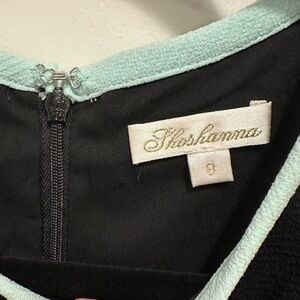 Shoshanna Fit & Flare Textured Skater Mini Dress 8 Black w/ Aqua Top Trim LBD
