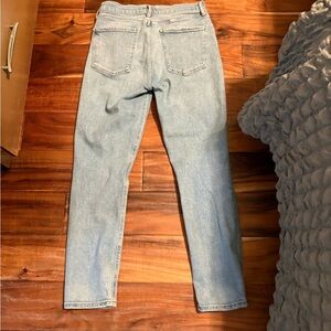 AGOLDE Riley women’s high rise straight leg jeans in size 27. Premium denim with button fly and classic straight fit. Light wash with ankle/cropped length — perfect everyday staple.