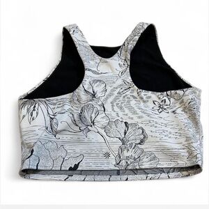 Athleta Black and White Floral Crop Tank Top with shelf bra, size large