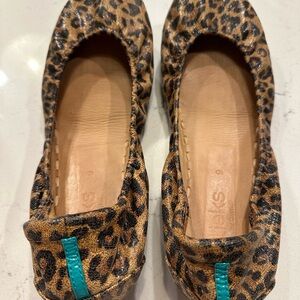 Elegant flats with a bold leopard pattern. Comfortable and stylish for everyday wear.
