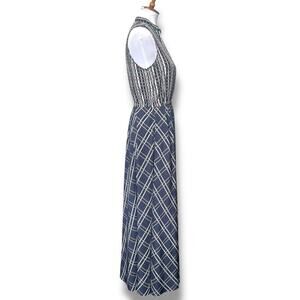 L.L Bean Signature Checkered Sleeveless Maxi Dress Navy Multi Women's Size 6