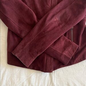 Ann Taylor Suede Genuine Leather Jacket Burgundy Sz XS Biker Moto