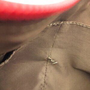 Fair condition. Some stains on the bottom of the bag. Also the stitching on one of the pockets inside has pulled loose. See the pictures.