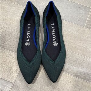 Elegant dark green flats with striking blue trim. Perfect for versatile wear. With box. Box is a bit dusty.