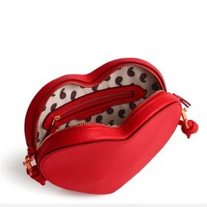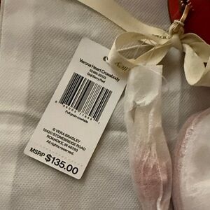 This is a new with tags Vera Bradley Verona Heart Crossbody Bag. It has the strap wrapped in the original packaging with the dust bag inside the purse. It is full grain cowhide. It comes from a smoke free home.