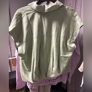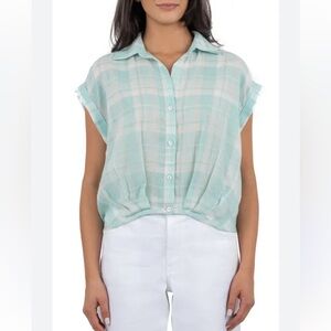 KUT from Kloth Gaia Pleat Hem Short Sleeve Button-up Top In Olive Size MD Rt $79