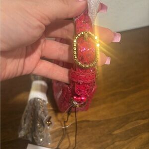 Eye-catching red mini bag by Kurt Geiger. Elegant gold detailing. Perfect for adding flair.
