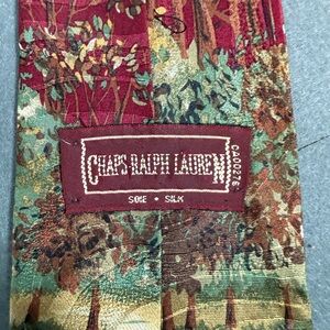 Add a touch of classic English countryside charm to your outfit with this vintage Chaps Ralph Lauren tie. Made from 100% Italian silk, it features a beautiful scenic print of an Irish Setter (or Spaniel) standing in a field of tall grass and autumn trees.