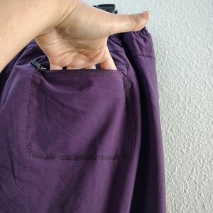 Eddie Bauer women’s jogger-style pants in a rich purple color.
