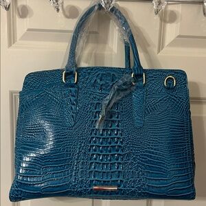 This NWT teal blue faux crocodile-embossed bag is perfect for any occasion. Gold tone hardware. Its elegant design adds a touch of sophistication to your outfit. 10” high, 14” wide, 6” deep. Included is an adjustable, removable shoulder or crossbody strap for comfort. Zip closure. Interior zip center pocket, side zip pocket and open pocket for organization. Cell strap. Super stylish.