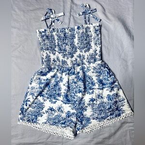 SHEIN Blue and White Kids Printed Romper