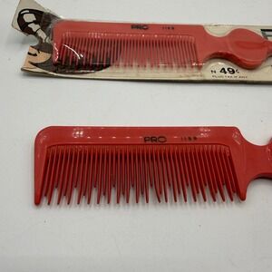 PRO Tease red styling comb hair tool. This versatile comb features a fine-tooth comb on one side and a pointed tail for sectioning and teasing on the other. Its ergonomic handle provides a comfortable grip for precise styling. Perfect for everyday grooming or professional salon use.