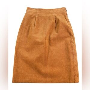 Authentic vintage Yves Saint Laurent Variation corduroy skirt dating to the late 1980s–early 1990s. Warm camel brown tone with a classic high-waisted pencil silhouette and straight fit. Made in France.
