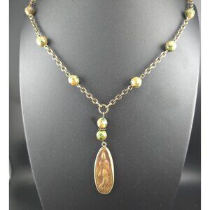 Light wear on chain and pendant, with slight patina on metal. Top to bottom of pendant = 2 inches.