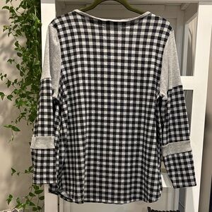 Umgee Black and Gray Checkered Long Sleeve Top