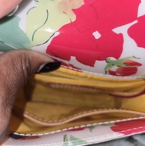 Beautiful and brilliant. Still very stiff. Crossbody has a few tiny specs of dirt on bottom front and back as shown in photos. Cannot be seen from afar. Corner in awesome condition and clean interior. Strap in awesome condition. Chic floral design with vibrant colors. Perfect for any occasion. Stylish and practical.