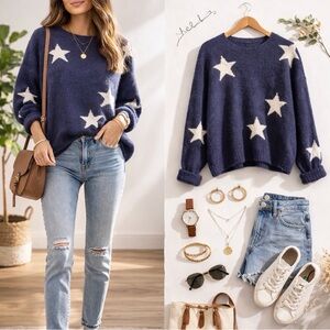 In excellent pre-loved condition. I adore this super cozy navy sweater with trendy white star accents. Crafted with wool and alpaca for that soft lived in look the Rails brand knows quiet luxury and delivers! Sweater is slightly wrinkled from storage.