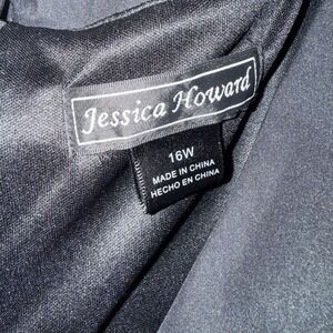NWT Jessica Howard Black Jersey Taffeta Portrait Collar A-Line Midi Dress 16W