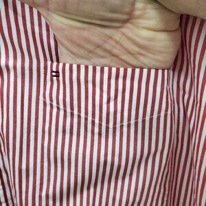 Tommy Hilfiger Academy Poplin Men's Red White Stripe Preppy Button Up Size XXL