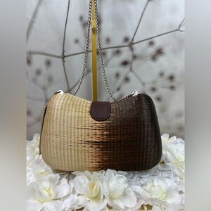 Vintage Le Sac Straw Round Hard Case Purse With Chain Handle NEW. 10”x 6”. Excellent condition beautiful straw finish brown and tan . So cute and unique