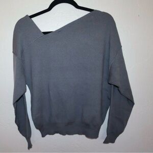 Line & Dot Sylvie Asymmetric Off-the-Shoulder Knit Sweater - Grey M