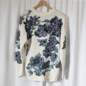Features: Hand-knit construction, crew neckline, long sleeves, floral pattern