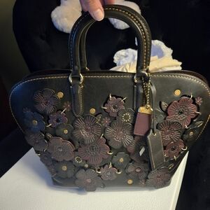 CoachTea Rose Dakota bag top handle with strap black / burgundy- Collector's